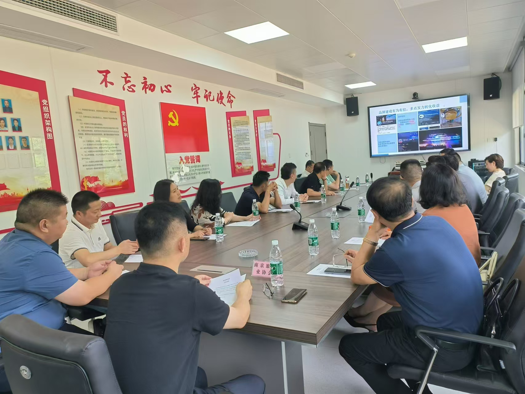 8 月 14 日下午,一场别开生面的共建活动在“长江传奇”游轮上盛大举行。南京旅游业协会执行会长奚建平、副会长兼秘书长乔海明、副会长朱明亮等协会领导与雨花台区数字文旅产业联盟主席、南京新中安物联技术股份有限公司董事长邹传江,联盟常务副主席、江苏德创文旅科技有限公司董事长官诚,联盟秘书长聂小芳等 20 名联盟成员代表齐聚一堂。