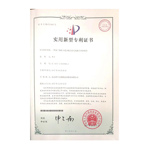 发明人:李丰 专利号:ZL201720354455.2 专利申请日:2017年04月06日 专利权人:南京新中安物联技术股份有限公司 授权公告日:2017年12月12日...